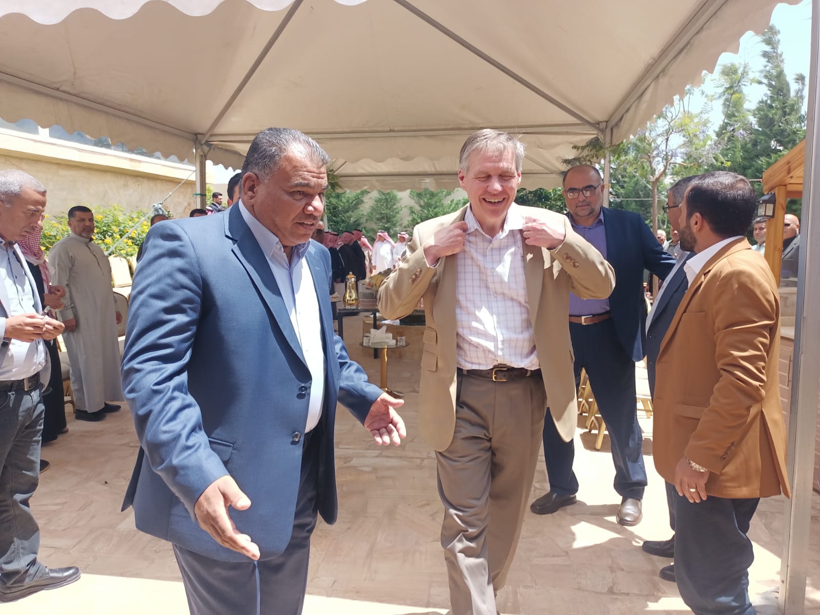 السفير البريطاني لدى الاردن فيليب هول قدم من جانبه شكره وتقديره إلى المحامي صالح الخشمان رئيس مجلس محافظة المفرق السابق على هذه الدعوة الكريمة وحسن الضيافة والاستقبال التي تلقاها خلال هذه الزيارة والتي تؤكد على محبة الشعب الأردني لكل ضيف.