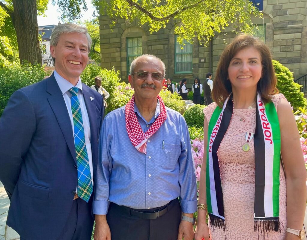 بدعوة رسمية من حاكم نوفاسكوشيا ونائب الملك تشارلز، ملك بريطانيا، آرثر ليبلانك (Lieutenant Governor Arthur LeBlanc)، شاركت السيدة نثيلة الريحاني، رئيسة ملتقى النشامى للجالية الأردنية في كندا، في حفلة الحديقة (Garden Party) التي تُعقد سنوياً في حديقة قصره ويحضره كبار الشخصيات من السياسيين والنواب والضباط.
