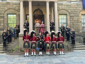 وقد تخلل الحفل عزف السلام الوطني الكندي والبريطاني وتحية بطول العمر للملك تشارلز الذي يُعتبر ملك كندا.