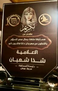 كرم مهرجان ملكه جمال مصر السلام، الإعلامية، شذى شعبان، بعد مشاركتها كمقدمة للحفل.