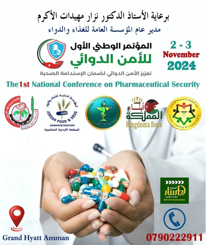 يستعد بنك الدواء الخيري وبالشراكة مع المؤسسة العامة للغذاء والدواء ، ونقابة الصيادلة ، وهيئة ” أبناء المملكة ” ، وبنك الشفاء والصحة الأردني ، ومؤسسة أصدقاء الأمن الوطني ، لإطلاق مؤتمره السنوي الأول بعنوان ” المؤتمر الوطني للأمن الدوائي – تعزيز الأمن الدوائي لضمانة الإستدامة الصحية ” .