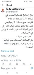 كتب عضو لجنة الشؤون الخارجية والبرلمانية في المجلس الوطني الفلسطيني، رئيس جمعية جذور لحقوق المواطن، د. فوزي السمهوري، على صفحته الخاصة بموقع اكس،