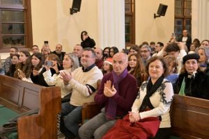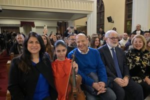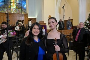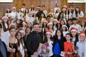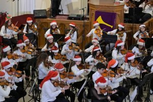 امتلأت مقاعد الكنيسة الأرمنية الإنجيلية الأولى بعدد كبير من الحضور وأهالي الطلاب، ومنهم من لم تتسع لهم المقاعد فحضروا الاحتفال وقوفاً، مصغين إلى أكثر من مئة طالب بين السبعة والأربعة عشرة عاماً، شكلوا أنسامبل من عازفي الكمان والتشيلو، وزيّنوا مذبح الكنيسة بآلاتهم الوترية وروحهم الطفولية الممتلئة بالعيد والموسيقى والحماس والتدريب المكثّف وقبعاتهم الحمراء الخاصة بالميلاد التي ارتدوها عند بدء عزفهم “الميدلاي” الموسيقي الميلادي، في أداءٍ موسيقيّ جذاب لمقطوعات عالمية وميلادية لعظماء الموسيقى مثل فيفالدي وفيردي، وباخ في مقطوعة (Sonata one- Adagio and Fuga) عزفتها منفردة الطالبة زوي سعادة، وبيتهوفين ودفوراك وغريغ وباشيلبيل، وأوسكار ريدينغ الذي أدت له مقطوعة (Violin concerto in B minor1st mvt) بعزف منفرد على الكمان الطالبة أندريا ديميرجيان وإيلغار.