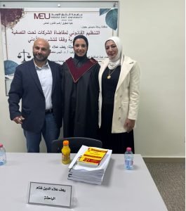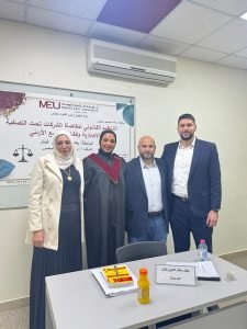 علاء الدين عمر غنام وعائلته يباركون ويهنئون ابنتهم الغالية، رهف غنام، بمناسبة حصولها على درجة الماجستير في القانون الخاص من جامعة الشرق الاوسط بتقدير جيد جدا.