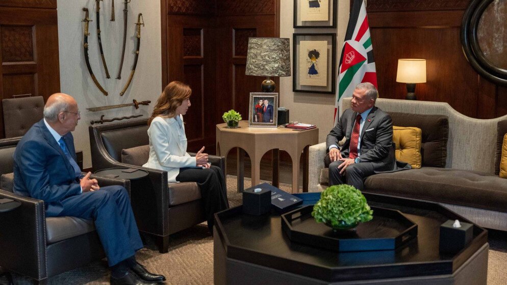 وحضر اللقاء رئيس الديوان الملكي الهاشمي يوسف العيسوي، ومدير مكتب جلالة الملك علاء البطاينة.