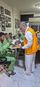 وفي النشاط الثاني بعنوان “كرامة وطن”، في تاريخ 15 / 8 / 2025، وضمن منصة مكافحة الجوع، وفي إطار روح العطاء وخدمة المجتمع، قام نادي ليونز وليو عمان ديتفلوس باستضافة عمال الوطن الكرام في مقر النادي، حيث تم تقديم وجبة غذائية وحلويات وعصائر ومياه باردة، تقديراً لجهودهم المخلصة في خدمة الوطن، وخاصة في ظل الموجة الحارة التي تشهدها البلاد.