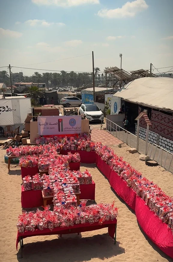 وقالت الهيئة في البيان “كانت الفرحة والابتسامة حاضرتين على وجوه الأطفال رغم كل ما يحيط بهم، في مشهد يعكس الجهود الأردنية الإغاثية والإنسانية الراسخة في الوقوف إلى جانب أهلنا في غزة”.