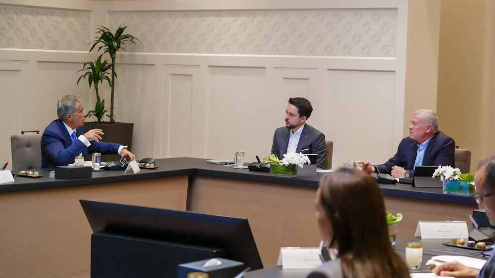 وحضر اللقاء مدير مكتب جلالة الملك، علاء البطاينة، ووزير دولة للشؤون الاقتصادية مهند شحادة، ووزيرة التخطيط والتعاون الدولي زينة طوقان، ووزير الاستثمار طارق أبو غزالة.