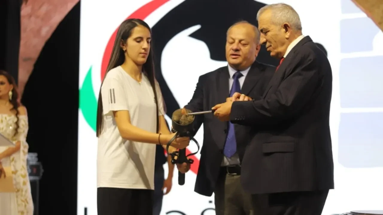 وقدم أيمن سماوي درعاً لوزير الثقافة مصطفى الرواشدة، يمثل الحصان رمز الفحيص.