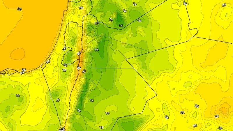 تشير الخرائط الجوية في مركز “طقس العرب” إلى حدوث انخفاض آخر على درجات الحرارة الليلية مع ساعات ليل السبت/الأحد، ويكون الطقس لطيفاً خلال ساعات الليل الأولى إلا أنه سيميل للبرودة تدريجيًا مع مرور الوقت، ويُصبح بارداً نسبياً خلال ساعات الليل المُتأخرة والفجر في المرتفعات الجبلية العالية والسهول الشرقية، بحيث تصل درجات الحرارة الصغرى إلى حدود 13 درجة مئوية في هذه المناطق الأمر الذي قد يلزم ارتداء معطف خلال ساعات الليل والصباح الباكر.