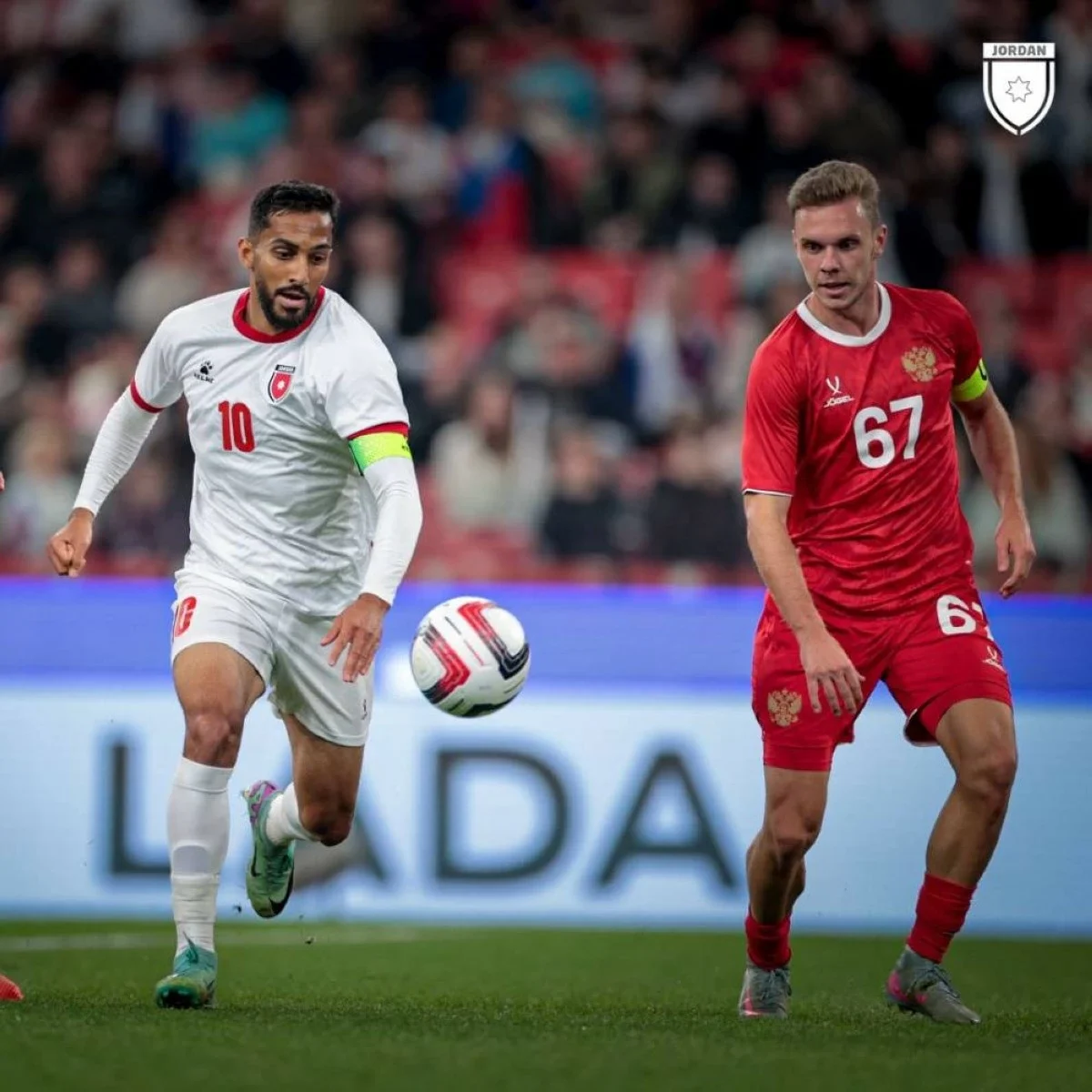 وشهدت المباراة أداءً متوازنًا من كلا الطرفين، حيث اعتمد المنتخب الوطني على التنظيم الدفاعي والانضباط التكتيكي، مقابل محاولات متكررة للمنتخب الروسي لاختراق الجدار الدفاعي الأردني دون أن ينجح في هز الشباك.