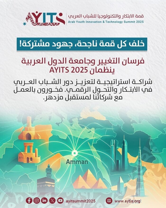 وقد جاء هذا التعاون تتويجًا لمخرجات منتدى الابتكار والاستثمار العربي الذي نظمته الأمانة العامة لجامعة الدول العربية في القاهرة يومي 21–22 يونيو 2025، حيث شهد المنتدى إطلاق عدد من المبادرات الاستراتيجية، وفي مقدمتها قمة الابتكار والتكنولوجيا للشباب العربي 2025، المقررة في العاصمة الأردنية عمّان خلال الفترة 27–30 أكتوبر 2025، وذلك ضمن فعاليات “عمّان عاصمة الشباب العربي 2025” بقرار صادر عن مجلس وزراء الشباب والرياضة العرب، وبدعم متكامل مع إعلان عمّان العاصمة العربية الرقمية 2025 الصادر عن مجلس وزراء الاتصالات العرب.
