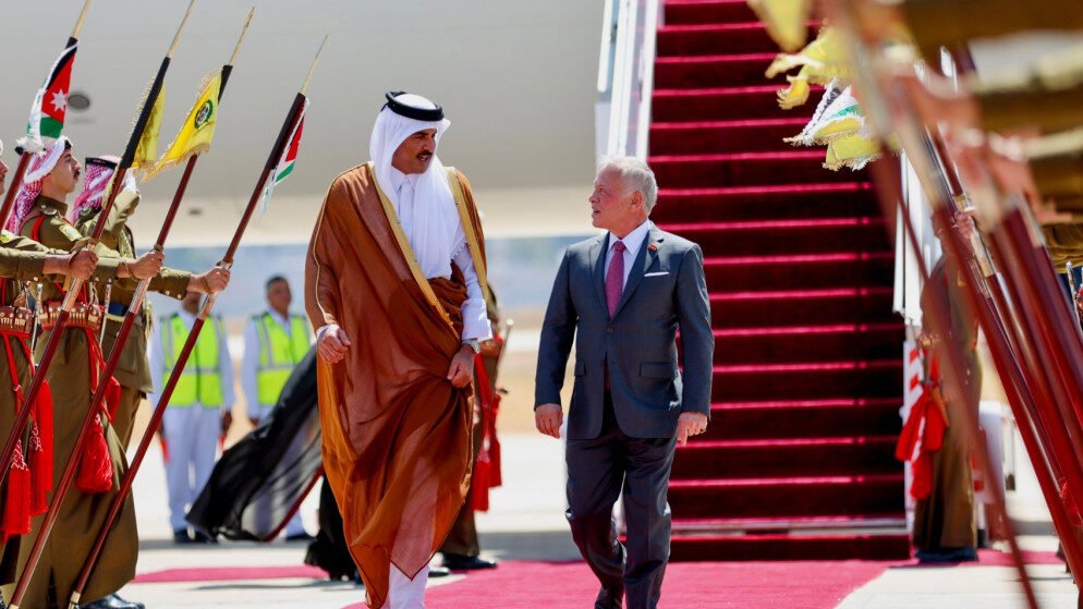 واستقبل جلالة الملك عبدﷲ الثاني، اليوم الأربعاء، سمو الشيخ تميم بن حمد آل ثاني أمير دولة قطر، لدى وصوله عمّان في زيارة رسمية للمملكة.