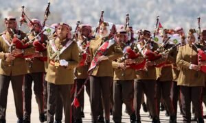 ولدى وصول موكب سمو أمير دولة قطر إلى الديوان الملكي الهاشمي محاطا بالموكب الأحمر، المخصص للمناسبات الرسمية والاحتفالات الوطنية، رافق الموكب مجموعة من فرسان الحرس الملكي (الخيالة)، ترحيبا بضيف الأردن الكبير.
