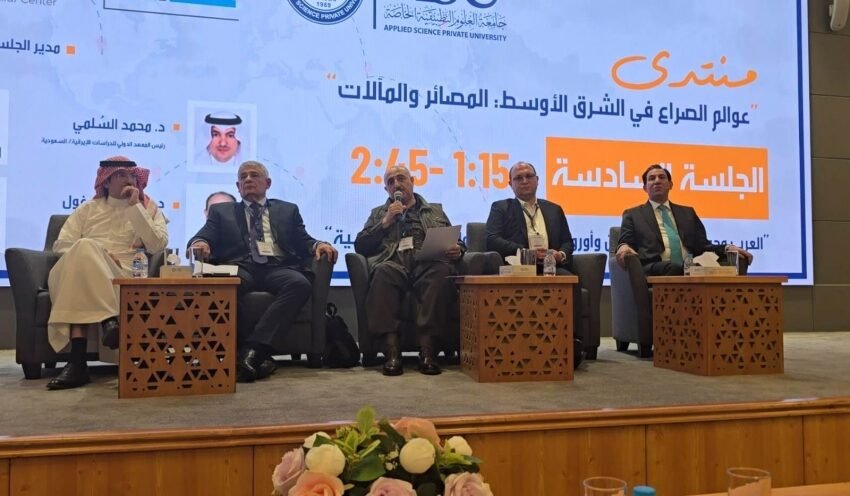 شارك غفور مخموري السكرتير العام للأتحاد القومي الديمقراطي الكوردستاني YNDK الأيام 15- 18/9/2025 في مدينة عمان عاصمة المملكة الأردنية الهاشمية، في منتدى (عوالم الصراع في الشرق الأوسط: المصائر والمآلات)، نظمته جامعة العلوم التطبيقية الخاصة و مركز إيلاف للدراسات والأبحاث، بدأ المنتدى اعماله بحضور عدد كثير من الشخصيات السياسية واللأكاديمية والثقافية والأعلامية من (الأردن، السعودية، الإمارات العربية المتحدة، قطر، مصر، الکویت، العراق، کوردستان، سوریا، تورکیا، لبنان، موریتانیا).