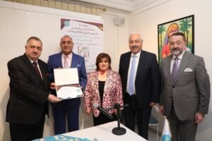 رعى سعادة الأستاذ عمر البرزنجي سفير جمهورية العراق في المملكة الأردنية الهاشمية إطلاق كتاب (قراءات حرة … في كتب مختارة) للكاتب والباحث صفوة فاهم كامل والذي أقيم مساء السبت 27/9/2025 في قاعة ملتقى الصابونجي الثقافي في العاصمة عمان وبحضور نخبة من أبناء الجالية العراقية والمجتمع الثقافي الأردني.. وقد أدار الجلسة الأستاذ الدكتور محمد ثابت البلداوي الذي رحب براعي الحفل وضيوفه مؤكداً على حرص المثقف العراقي بأن يكون واجهة مشرقة أينما اغترب وأينما أقام مشيراً إلى أن هناك أعداداً كبيرة من مثقفي العراق الذين يقيمون في العاصمة عمان وكان لهذا المكان الذي احتوى أكثر من (97) لقاءاً ثقافياً أدبياً فنياً نقدياً علمياً في التخصصات الإنسانية والعلمية وكان منبراً لتبادل الثقافات وتقاربها وأثنى مدير الجلسة على اهتمام وحرص سعادة السفير الدائم على دعم النشاطات الثقافية وحرصه على التواصل مع أبناء الجالية من خلال ممثلياتها وهذه النشاطات التي تقام، والجدير بالذكر أن الكتاب الذي قدمه الأستاذ صفوة والذي تناول فيه مجموعة من الكتب المختارة من مكتبته والذي كان له الأثر في إخراجها وتنقيحها وفهرستها وما حملت من مواضيع مختلفة وإهداءات من مؤلفيها إلى تلخيصها في هذه المجموعة الذي حرص استمراره على تدوين رأيه من خلال المشاركة في الصحف الإلكترونية والأسبوعية واليومية، وتخلل الكتاب مجموعة من الشخصيات التي أعجب بها الكاتب فاختارها ومن ضمنها كتاب سعادة العين الدكتور محمد داودية الذي أعجب بمؤلفه وما تم من تلخيصه وقد أثنى الكاتب على هذا الاحتضان الطيب الذي شهده من خلال الحضور والرعاية والتقديم وفي كلمة ألقاها سعادة السفير أمام الحضور شكر من كان وراء هذا الحفل البهي من إدارة للقاعة والندوة والكاتب وقد أثنى على الجميع بهذا التواصل من خلال هذا المنبر الثقافي المهم وفخره بأن أبناء الجالية المقيمين في المملكة وحرصهم على هذا الحضور الثقافي المتميز. وقدم سعادته شهادة تقديرية تذكارية قدمت باسم الملتقى إلى الضيف واختتم بمداخلة الضيوف وأسئلتهم للكاتب ومن ثم صورة جماعية جمعت الحاضرين.