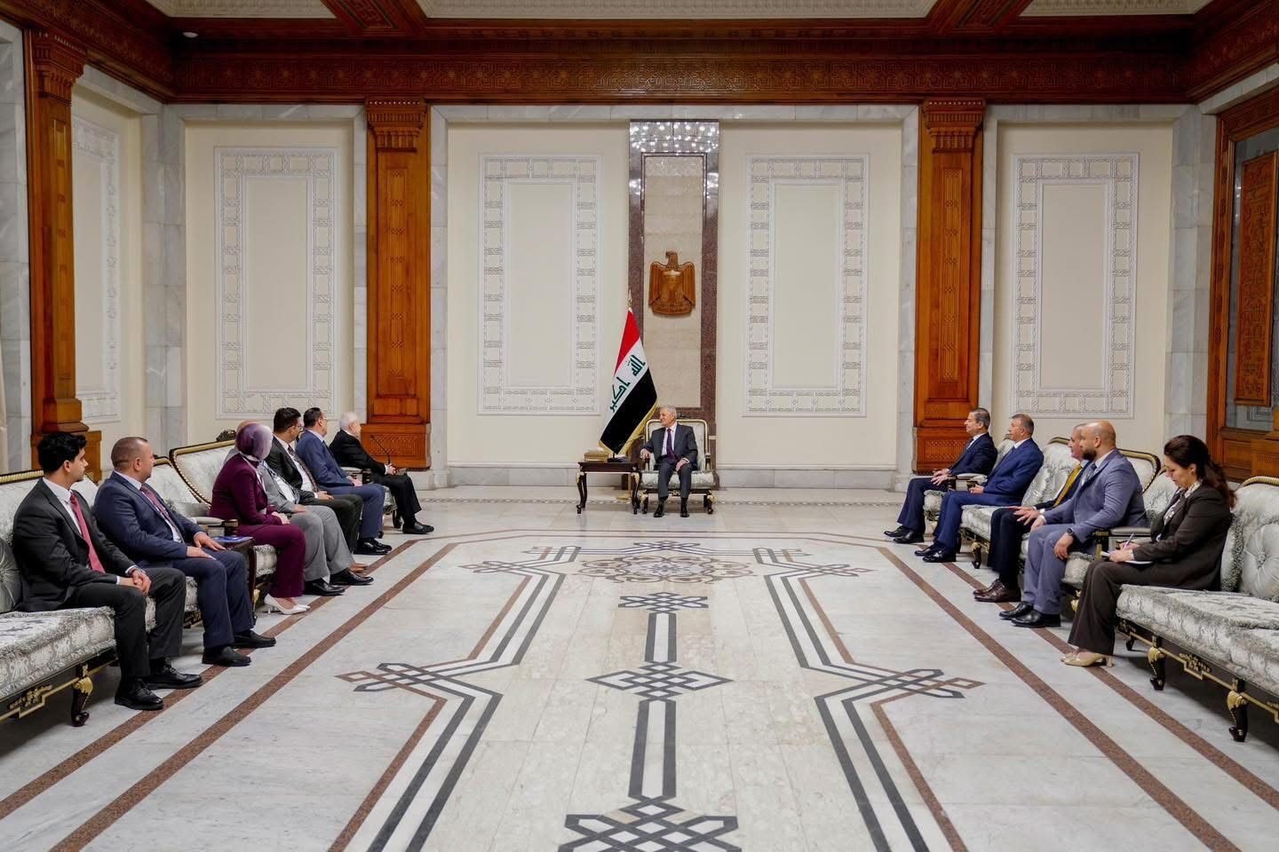 جاء ذلك خلال استقبال فخامته في قصر بغداد وفد الشبكة العربية للإبداع والابتكار برئاسة معالي الدكتور طلال أبو غزالة، رئيس مجلس أمناء الشبكة ورئيس الكونغرس العربي العالمي للابتكار، وعضوية الدكتور محمود عبدالعال فراج رئيس مجلس إدارة الشبكة،والأستاذ فهد فايز العملة الأمين العام للشبكة، والسيد مروان التميمي منسق أعمال مجلس الأمناء.