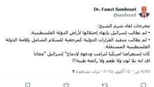 كتب عضو المجلس الوطني الفلسطيني، رئيس جمعية جذور لحقوق المواطن، د. فوزي السمهوري على صفحته الخاصة بموقع إكس،