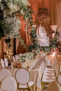في تصميم يحاكي فخامة الأميرة العصرية، منسجمًا مع هوية الحفل الملكية.