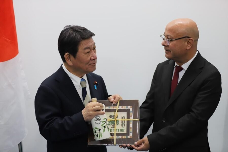 استقبل عضو اللجنة التنفيذية لمنظمة التحرير الفلسطينية، ورئيس دائرة شؤون اللاجئين، د. أحمد أبو هولي، وزير الخارجية الياباني توشيميتسو موتيغي، الأحد، خلال زيارة ميدانية إلى مخيم الجلزون، وذلك للاطلاع على الإنجازات التي تم تحقيقها ضمن مشاريع المنحة اليابانية المنفذة في المخيم، والمموّلة من الحكومة اليابانية، في إطار دعم صمود اللاجئين الفلسطينيين وتحسين مستوى الخدمات المقدمة لهم.