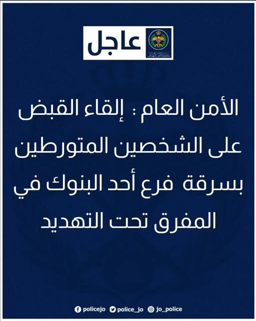 الصفحة الرئيسية محلياتالقبض على الشخصين المتورطين بسرقة فرع أحد البنوك في المفرق تحت التهديد