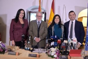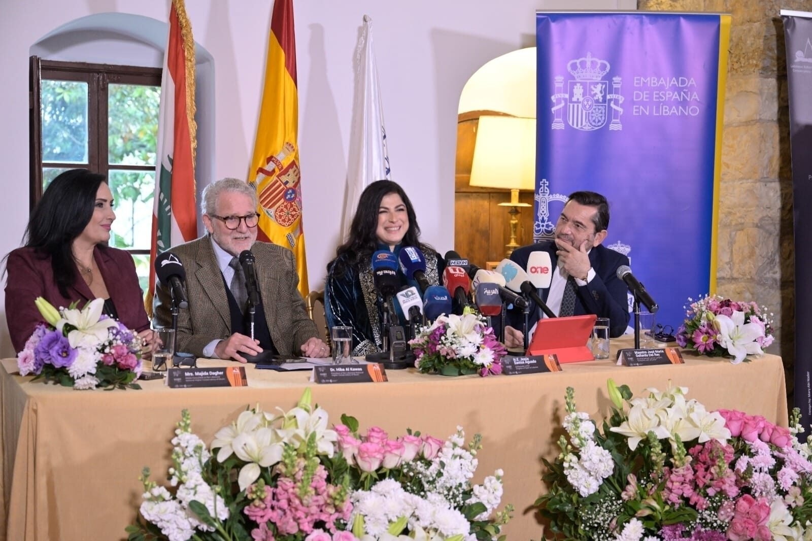 افتتحت المؤتمر المستشارة الإعلامية في المعهد الوطني العالي للموسيقى ماجدة داغر مرحّبة بالحضور وبالإعلاميين. ثم كانت الكلمة الأولى للسفير الإسباني خيسوس سانتوس أغوادو أثنى فيها على “العمل الدؤوب الذي يتميز به كل من رئيسة المعهد الوطني العالي للموسيقى هبة القواس والعازف العالمي والمؤلف الموسيقي الاسباني خوسيه ماريا غياردو لإنجاح المشروع”. وقال إن هذا الحدث “هو استمرارية للأعمال المشتركة التي تجمعنا منذ ثلاث سنوات، وما قدمناه سوياً من حفلات موسيقية ناجحة على المستوى الإسباني اللبناني بالتعاون الوثيق مع رئيسة الكونسرفتوار. وكذلك على المستوى الأكاديمي من خلال الـماستر كلاسز التي يقوم بها العازف غياردو ديل راي لطلاب الكونسرفتوار، ومشاركاته الدائمة بالعديد من الحفلات مع المعهد والأوركسترا. ونأمل أن يشارك عازفو الغيتار من كل أنحاء العالم في هذه الجائزة، ويعزفوا الموسيقى الإسبانية في بيروت”. مشيرا إلى أهمية التعاون الدولي في هذا المجال والعلاقة الممتازة التي تربط لبنان وإسبانيا، مشدداً على عمق الروابط الثقافية بين البلدين، معتبراً أن دعم هذا المهرجان هو استثمار في الجمال والإبداع الذي يجمع الشعوب. وعبّر السفير عن امتنانه للمؤسسات الإسبانية الداعمة للمشروع وهي: جمعية المؤلفين والناشرين SGAE، والوكالة الإسبانية للتعاون الدولي من أجل التنمية، القسم الثقافي، التابعة لوزارة الخارجية والاتحاد الأوروبي والتعاون، ومؤسسة ألكري لفنون الغيتار”.