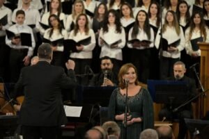 وبصوتها الذي يجمع بين المخملية والمرونة التقنية، أدّت الفنانة هدى جمال، بقدرة واحتراف، أمام الأوركسترا وتوزيعات الدكتور عبد الله المصري. في أغنية “شايف البحر شو كبير” و”بكرم اللولو”، أظهرت جمال قدرة على التحكم في “الديناميكيات” الصوتية، من الهمس الرقيق إلى الدرامية العالية، فاستطاعت أن تملأ فضاء الكنيسة بإحساسٍ طربي أصيل، مبتعدةً عن الاستعراض ومقتربةً من جوهر التعبير الغنائي الراقي.