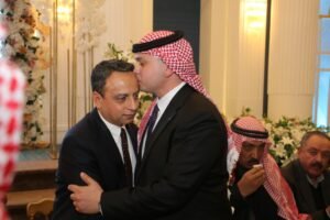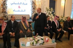 وقد ترأس الجاهة الدكتور يوسف العبادي حيث تحدث باسم آل الماضي الشبلي وقام بطلب يد العروس، فيما تولّى الحديث باسم آل القضاة الشيخ طلال صيتان الماضي الذي قام بالرد على الجاهة الكريمة بتلبية طلبها وإعطاء يد العروس، في مشهدٍ يجسد أصالة العادات والتقاليد الأردنية وقيم المحبة والتآلف بين العائلات حيث سادت أجواء من الفرح والسرور أرجاء المكان، حيث عبّر الحضور عن سعادتهم بهذه المناسبة الطيبة، متمنين للعروسين حياة ملؤها المودة والرحمة، وأن يجمع الله بينهما على خير ويتمم لهما بالرفاه والبنين.. والف الف مبروك.