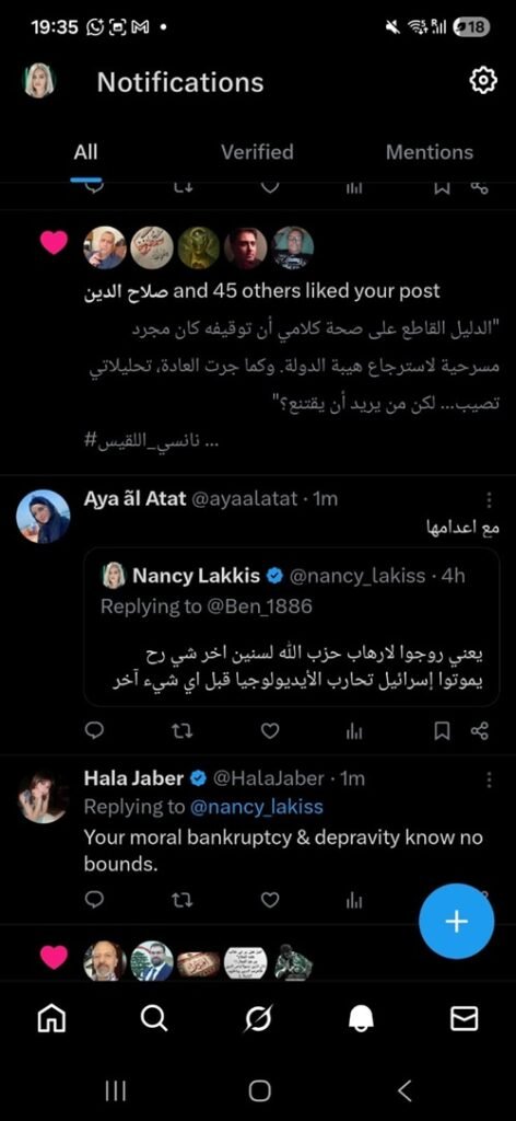 ملاحظة: تظهر الصور المرفقة أن الإعلامية نانسي اللقيس تتعرض لعملية “اغتيال معنوي” منظمة تهدف إلى إسكات صوتها، مما يضع الأجهزة الأمنية والقضائية أمام مسؤولية حماية الصحفيين من لغة التهديد بالقتل.