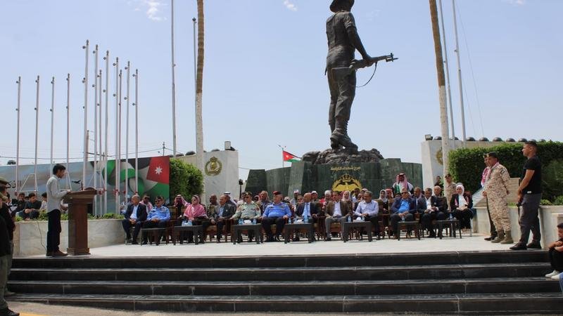 واشتمل الحفل على فقرات وطنية وثقافية متنوعة، عبّر المشاركون خلالها عن اعتزازهم بالدور الكبير الذي تضطلع به القوات المسلحة الأردنية والأجهزة الأمنية في حماية الوطن والحفاظ على أمنه واستقراره. كما أقام صرح الشهيد/ الشمال احتفالاً بيوم العلم الأردني، بمشاركة هيئة شباب كلنا الأردن ومدرسة وروضة رواد العلم الأساسية، وسط حضور واسع من الطلبة. وتضمن الاحتفال فعاليات وطنية وقصائد شعرية تغنت بالوطن وقائده، مجسدة بذلك معاني الولاء والانتماء، ورسخت قيم الوفاء لتضحيات الشهداء، في إطار تعزيز الهوية الوطنية لدى الأجيال الشابة وترسيخ روح المواطنة الصالحة.