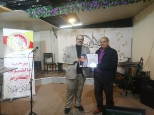وفي نهاية الأمسية قدّم راعي الحفل د. سلطان الزغول يرافقه رئيس الاتحاد الأديب رائد العمري التكريمات للمشاركين.